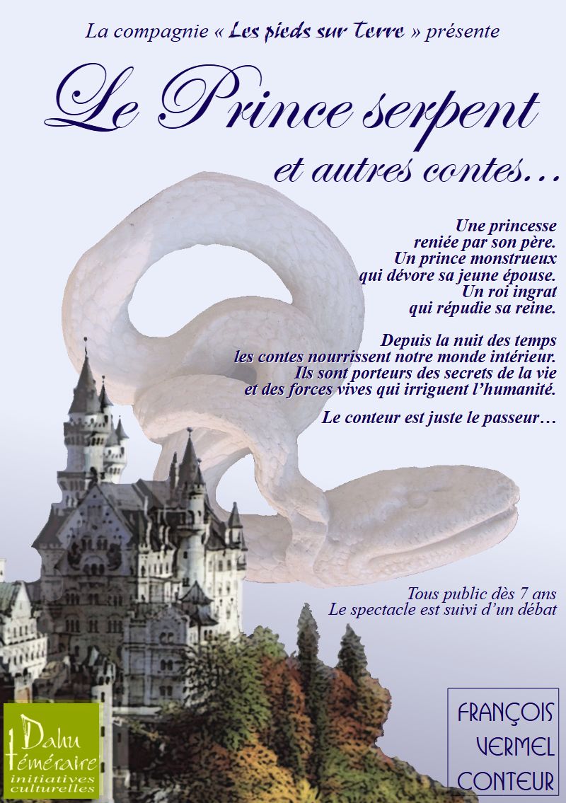 Ce spectacle s’articule autour du « Prince serpent » un conte merveilleux de tradition orale. Il est particulièrement pertinent pour les élèves des collèges et des lycées. Il explore les questions existentielles des jeunes en recherche de leur identité.